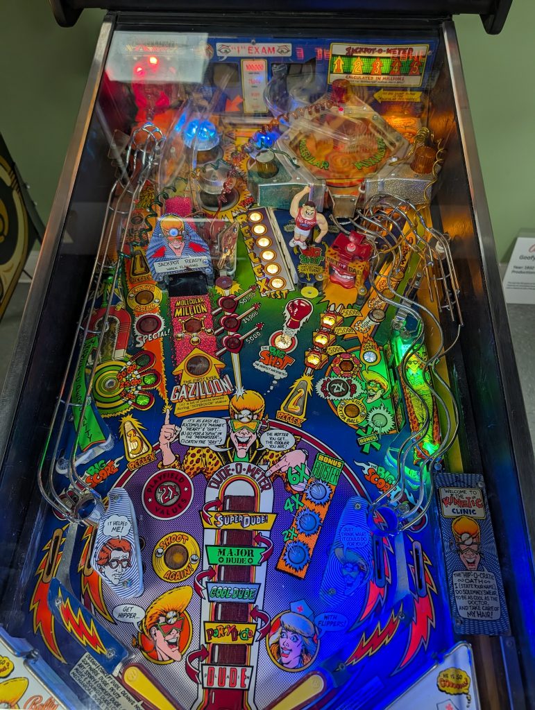 Both husband and wife run the place as part of their retirement dream. The collection includes a pinball machine displaying Dolly Parton, Twilight Zone, Star Trek, Godzilla, and many more. Even games from the ’30s that would be considered your prehistoric pinball machine—and I’m not just saying that because a Jurassic Park game has a home there, too.